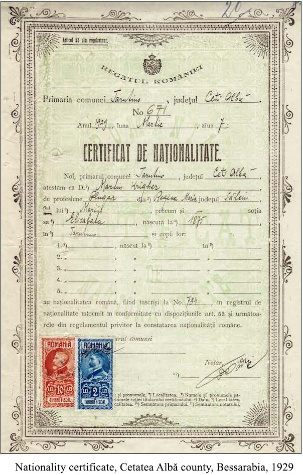 One way to achieve this was to fix nationality and ethnicity in space. Censuses and especially ethnographic and demographic maps affixed identities to particular territories, making visible (or invisible) one community or another and creating national taxonomies into which peoples could be neatly segregated. Beginning in April 1924, a series of statutes under the rubric The Regulations on Establishing Romanian Nationality aimed not only to establish the procedure for acquiring Romanian nationality but also to facilitate the recording and cataloging of the various populations in the new Romanian territories. Thus was created an inventory and topology of the Romanian nation using nationality lists, nationality registers, and nationality certificates (certificate de naţionalitate). In the process, not only minority but also a majoritarian national identity became codified and then inscribed in the legitimizing documents of state bureaucracies. Homogenizing projects and legislation generated an epistemological knowledge of the nation – quantifying and objectifying the nation, from something abstract to something real, something living – with the aim, ultimately, to create a nation-state that was unitary, stable. The Romanian equivalent of Germany’s Ostforschung created a veritable database of the nation’s people, utilizing statisticians, demographers, sociologists, historians, cartographers, and, by the 1930s, racial anthropologists and eugenicists. Research on Romania’s vast populations was coordinated by ominous-sounding centers or bureaucracies such as the Institute of Biopolitics, the Institute of Hygiene and Social Hygiene, and later the State Undersecretariat of Romanianization, Colonization, and Inventory. By the late 1930s, the policy of Romanianizaiton (românizare) became an organizing policy of the Romanian state, a policy that segued into deportations, resettlements, repatriations, and ultimately genocide.