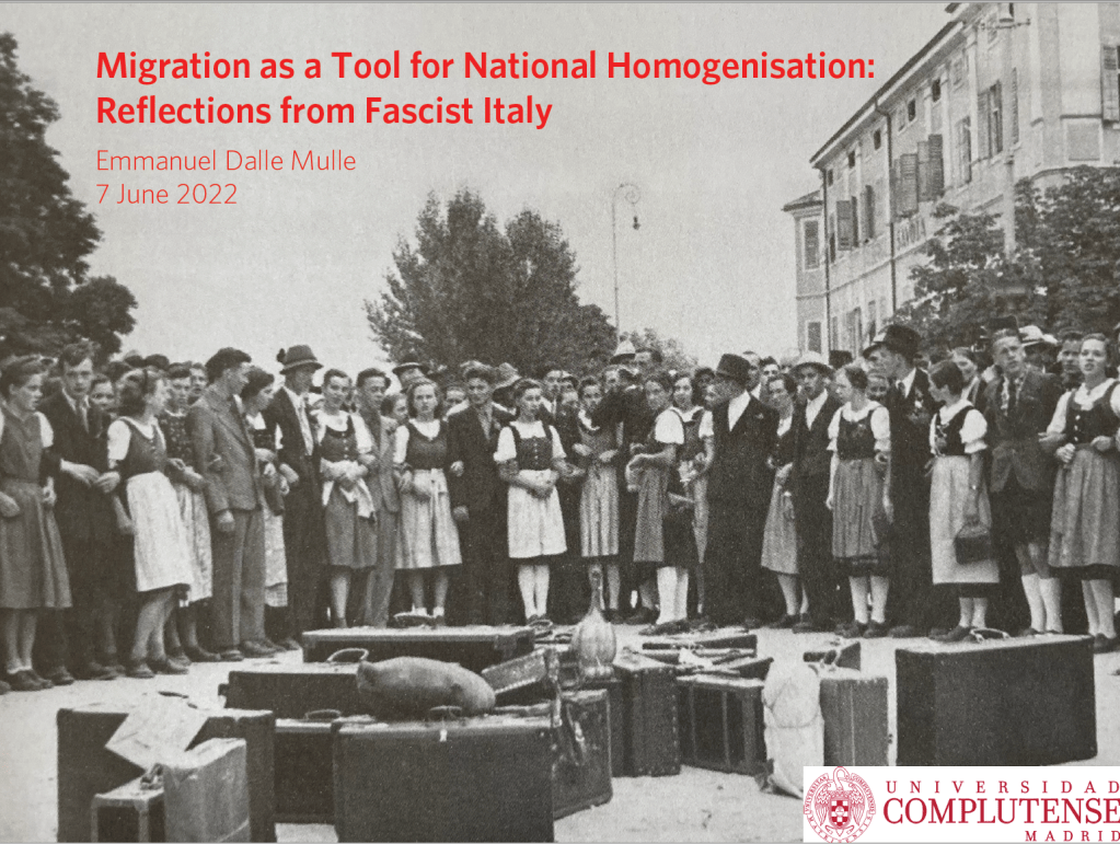 You have probably never heard of the 1939 Option Agreement between fascist Italy and Nazi Germany. Yet the agreement was the first population transfer agreement in western Europe. Emmanuel and Alessandro have decided to take a new look at this neglected event of interwar European history from the perspective of how the fascist regime conceived minorities and their assimilation in Italy.